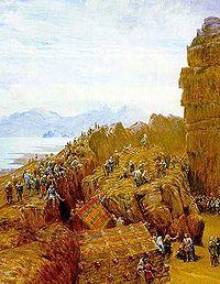 When Olaf Tryggvason ascended the throne of Norway, the effort to Christianize Iceland intensified. King Olaf sent an Icelander named Stefnir Thorgilsson back to his homeland to convert his fellow countrymen. Stefnir violently destroyed sanctuaries and images of the heathen gods – this made him so unpopular that he was eventually declared an outlaw. After Stefnir's failure, Olaf sent a priest named Thangbrand. Thangbrand was an experienced missionary, having proselytized in Norway and the Faroe Islands. His mission in Iceland from c. 997–999 was only partly successful. He managed to convert several prominent Icelandic chieftains, but killed two or three men in the process.[4] Thangbrand returned to Norway in 999 and reported his failure to King Olaf, who immediately adopted a more aggressive stance towards the Icelanders. He refused Icelandic seafarers access to Norwegian ports and took as hostages several Icelanders then dwelling in Norway. This cut off all trade between Iceland and its main trading partner. Some of the hostages taken by King Olaf were the sons of prominent Icelandic chieftains, whom he threatened to kill unless the Icelanders accepted Christianity. In the 11th century, three Armenian bishops, Petros, Abraham and Stephannos are recorded by Icelandic sources as Christian missionaries in Iceland. Their presence has been explained in terms of the service of King Harald Hardrada of Norway (c.1047–1066) as a Varangian in Constantinople, where he had met Armenians serving in the Byzantine Imperial Army.[5]