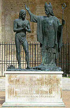 - ^ Examples include the Massacre of Verden in 782, during which Charlemagne reportedly had 4,500 captive Saxons massacred upon rebelling against conversion, and the Capitulatio de partibus Saxoniae, a law imposed on conquered Saxons in 785 which prescribes death to those that refuse to convert to Christianity.