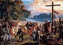 During the Reconquista and the Crusades, the cross served the symbolic function of possession that a flag would occupy today. At the siege of Lisbon in 1147, when a mixed group of Christians took the city, "What great joy and what a great abundance there was of pious tears when, to the praise and honor of God and of the most Holy Virgin Mary the saving cross was placed atop the highest tower to be seen by all as a symbol of the city's subjection."[44]