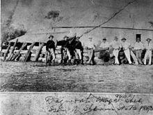 In Queensland in 1891 the Great Shearers' Strike brought the colony close to civil war and was broken only after the Premier of Queensland, Samuel Griffith, called in the military. In September 1894, some shearers at Dagworth Station were again on strike. The situation turned violent with the striking shearers firing their rifles and pistols in the air and setting fire to the woolshed at Dagworth, killing dozens of sheep. The owner of Dagworth Station and three policemen gave chase to a man named Samuel Hoffmeister, an immigrant said to have been born in Batavia[7] also known as "Frenchy".[14] Rather than be captured, Hoffmeister shot and killed himself at the 4 Mile Creek south of Kynuna at 12.30 pm on 2 September 1894.
