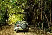 Christmas Island has 80 kilometres (50 mi) of shoreline but only small parts of the shoreline are easily accessible. The island's perimeter is embodied by sharp cliff faces, making many of the island's beaches difficult to get to. Some of the easily accessible beaches include Flying Fish Cove (main beach), Lily Beach, Ethel Beach, and Isabel Beach, while the more difficult beaches to access include Greta Beach, Dolly Beach, Winifred Beach, Merrial Beach, and West White Beach, which all require a vehicle with four wheel drive and a difficult walk through dense rainforest.[56]