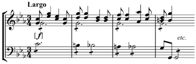- J. S. Bach, Orgelbüchlein, BWV 614: "Das Alte Jahr vergangen ist" (in the three accompanying voices)