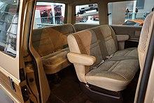 Several seating configurations were offered, depending on trim level. The standard configuration of five-passenger seating in two rows was included with seven or eight-passenger seating in three rows; the back two seats were two-passenger and three-passenger bench seats (in the style of a larger van, these latched to the floor). The more popular two-passenger configuration was offered in several configurations, with low-back seats (as the minivan was technically a light truck), or high back seats with headrests; depending on trim level, seats could have vinyl, "deluxe" cloth or vinyl, or "luxury" cloth/vinyl upholstery. Two styles of rear seats were offered. The three-passenger rear bench was adjustable for passenger legroom or cargo space; the seatback also folded down when not in use.[4] In 1985, a five-passenger version was introduced with a fold-flat rear seat; called "Convert-a-bed", the option allowed the rear seat to fold backwards into a bed. The Convert-a-bed was also available paired with the front bench seat. [4]