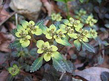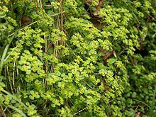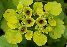 Chrysosplenium (golden saxifrage or golden-saxifrage) is a genus of 57[2] species of flowering plants in the family Saxifragaceae. Species can be found throughout the arctic and northern temperate parts of the Northern Hemisphere, with the highest species diversity in eastern Asia; two species are found disjunctly in South America.[2]