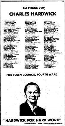 - ^ a b c "Hardwick Campaigns Family Affairs for 19 Years". Westfield Leader. 28 July 1977.