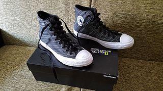 In June 2017, Converse announced a new line of sneakers for release in the United States that was designed by Hiroshu Fujiwara, Tinker Hatfield, and Mark Parker. A hi-top and a low-top range were planned, with initial color offerings in silver, royal blue,[25] red, green, and black,pink, blue.[26] A luxe range in white or black patent leather were also planned for business casual wear.[27] These shoes would follow the classic Chuck Taylor design, but featured several improvements:[28] a circular knit upper with a futuristic shiny finish;[29] a cushioned foam rubber sole similar to the Air Jordans; a Neoprene tongue; and a TPU-fused toecap.[28]