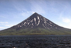 Chuginadak Island (Aleut: Tanax̂ Angunax̂;[1] Russian: Чугинадак) is the largest island in the Islands of Four Mountains subgroup of the Aleutian archipelago. Chuginadak is an Aleutian name published by Captain Tebenkov in an 1852 map. According to Knut Bergsland's Aleut Dictionary, the Aleutian word "chugida-lix" means "to fry, to make sizzle." The Western half of the island is called Chuginadax in Aleut, meaning 'simmering'.[1]
