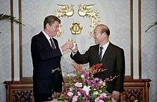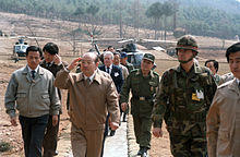 Chun's government did not have the considerable political influence enjoyed by Park Chung-hee's administration. His government could not ignore American influence, and he ended South Korea's nuclear weapons program.[12][13] During this time, Chun was worried about the state of South Korean-American relations, which had greatly deteriorated towards the end of Park Chung-hee's long authoritarian presidency. Chun needed to be recognized by the United States to legitimize his government.[14]