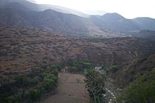 The department is traversed by the main cordillera of the Andes mountain range and lesser cordilleras. Parts of it lay within the basin of the Amazon River, and other parts within the basin of the Río de La Plata. The surface area of the department is 51,524 square kilometers.[2] The topography of central Chuquisaca consists of a series of ridges rising up to 1500 m that run north and south with flat valleys between the ridges. To the west of these ridges abruptly rise the Andes Mountains to 3000 m forming a prepuna landmass that is cut into by large river valleys that drain into the Amazon or Rio de la Plata river basins. To the east of the central ridges lies a stretch of territory containing low altitude flat Chaco topography.[3] 90% of the land in the department of Chuquisaca has an inclination of 70% or more.[2]