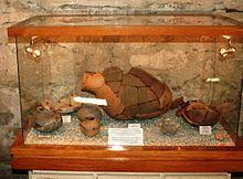 According to the 7th century Armenian historian Movses Kaghankatvatsi, in the 1st century AD St. Elishe, a disciple of Thaddeus of Edessa, arrived to a place called Gis (Գիս), where he built a church and recited a liturgy. The church became the "spiritual center and the place of enlightenment of people of the East". On his way from Gis St. Elishe was killed near the pagan altar in the small Zerguni valley by unknown people.[8] According to the Armenian historian on architecture[9] Samvel Karapetian, the geographical position of Kish does not seem to match that described by Kaghankatvatsi. Karapetian believes that they have identified Gis as the village of Bomen/Bum 60 km to the south-east of Kish,[5] in Gabala district.