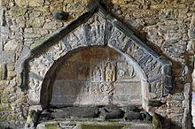 In 1528, Alasdair Crotach MacLeod, 8th Chief, prepared for himself a magnificent wall tomb on the south side of the choir - possibly the finest medieval wall tomb in Scotland, being crowned by an arch and ornated by carvings of biblical design. The 9th Chief, Alasadair or Alexander's son William, had his grave prepared in the south wall of the nave in 1539. In the south transept, there is a third grave probably belonging to John MacLeod of Minginish, the 10th Chief. There are five more grave slabs leaning against the wall of the north transept. The graveyard surrounding the church contains a number of MacLeod tombs.