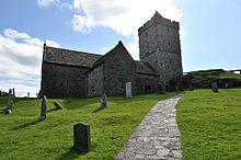 According to Dean Donald Munro in his 1549 work about the Western Isles,[1] the church was built for the Chiefs of the MacLeods of Harris, who lived in Dunvegan Castle in Skye, probably from about 1520, and is not considered the first church on the site although there is no clear evidence of an older Celtic church. Munro described the church as a monastery, but as there is no evidence hinting to a monastic community, this expression is believed to refer to a minister, and with it to an important parish church. It was a Catholic church before falling into disuse shortly after its completion around 1560 as a consequence of the reformation, but the churchyard continued to be used as a MacLeod burial site. The church's decayed roof was renewed in 1784 by Captain Alexander MacLeod of Berneray, but burned down shortly after and had to be rebuilt once again in 1787. In the 19th century it was used as a cow byre before being restored by Catherine Herbert Countess of Dunmore in 1873, and in 1913, the tower was rebuilt after being damaged by a lightning strike six years earlier. Today, the church is under the care of Historic Scotland. Notable 17th-century poet Mary Macleod (Mairi Nighean Alasdair Ruaidh) is said to be buried here.