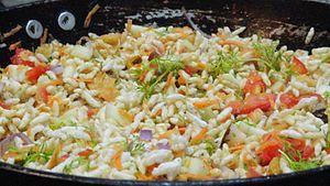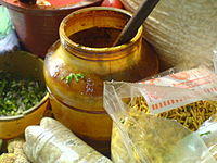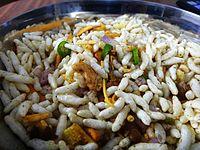 Jhalmuri (Bengali: ঝালমুড়ি) is a popular Bengali street snack, made of puffed rice and an assortment of spices, vegetables, chanachur and mustard oil.[1] It is especially popular in Bangladesh[2] and in the neighbouring West Bengal state of India.[3] It became popular in London when a British chef named Angus Denoon tried this snack in Kolkata and started selling it on streets of London.[4] Popularity of Jhalmuri has also reached other western cities like New York City through the Bangladeshi diaspora.[5]