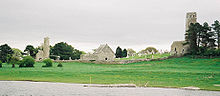 The monastery at Clonmacnoise became one of the most important centres of learning and religious life in Ireland.[8] Unusually, the title of abbot – which included the title "Comarba of Saint Ciarán" – at the community was not hereditary, which reflected the humble origins of its founder. It managed to survive the plunderings of the Viking raids and the Anglo-Norman wars, and was only destroyed during the Dissolution of the Monasteries, in 1552. The ruins still exist, and remain a centre of civic and religious activity to this day.