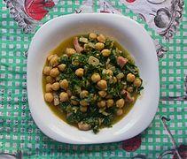Manchego cuisine; chickpea and Silene vulgaris stew (potaje de garbanzos y collejas)