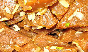 Chickpeas and Bengal grams are used to make curries and are one of the most popular vegetarian foods in the Indian subcontinent and in diaspora communities of many other countries served with variety of breads or steamed rice. Popular dishes in Indian cuisine are made with chickpea flour, such as mirchi bajji and mirapakaya bajji. In India, as well as in the Levant, unripe chickpeas are often picked out of the pod and eaten as a raw snack and the leaves are eaten as a leaf vegetable in salads. In India, desserts such as besan halwa and sweets such as mysore pak, besan barfi and laddu are made.
