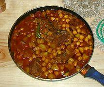 In Portugal, chickpeas are one of the main ingredients in rancho, eaten with pasta and meat or with rice. They are used in other hot dishes with bacalhau and in soups, meat stews, and salads mixed with tuna and vegetables, olive oil, vinegar, hot pepper and salt. In Spain, they are used cold in tapas and salads, as well as in cocido madrileño.