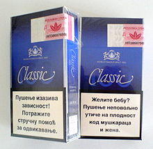 A cigarette tax stamp is any adhesive stamp, metered stamp, heat transfer stamp, or other form or evidence of payment of a cigarette tax.[1] A cigarette tax stamp is a specific example of a revenue stamp.