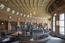 The museum as a whole opened on November 10, 1990, though it had its "grand opening day" on November 2, 1991, with the two museum's first permanent exhibits there. The original members of the museum center were the Cincinnati Historical Society Library, Cincinnati History Museum, Cincinnati Museum of Natural History, and the Robert D. Lindner Family Omnimax Theater.[7] The museum center opened with the largest display of robotic dinosaurs, the largest World War II commemorative exhibit, and one of fourteen Omnimax theaters in the United States. Museum center officials were unsure if people would travel to the new museums as predicted, though the center became the fourth-largest attraction in the area, behind the Cincinnati Reds, Kings Island, and the Cincinnati Zoo.[11] The renovations included the installation of the Grand E.M. Skinner Concert Organ.[12] In 1995, the entities officially merged to create the Cincinnati Museum Center, also joined by the Cinergy Children's Museum in October 1998.[7]