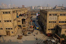 East German cinema initially profited from the fact that much of the country's film infrastructure, notably the former UFA studios, lay in the Soviet occupation zone which enabled film production to get off the ground more quickly than in the Western sectors.[22] The authorities in the Soviet Zone were keen to re-establish the film industry in their sector and an order was issued to re-open cinemas in Berlin in May 1945 within three weeks of German capitulation.[23] The film production company DEFA was founded on 17 May 1946, and took control of the film production facilities in the Soviet Zone which had been confiscated by order of the Soviet Military Administration in Germany in October 1945.[24] A joint-stock company on paper, the majority interest in DEFA was actually held by the Socialist Unity Party of Germany (SED) which became the ruling party of the German Democratic Republic (GDR) after 1949, formally placing DEFA as the state-owned monopoly for film production in East Germany.[25] A sister "company", Progress Film, had also been established as a similar monopoly for domestic film distribution, its principal "competition" being Sovexportfilm, which handled distribution of Soviet films.[26]