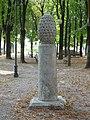 Cippo surmounted by a pine cone, which symbolizes the tree of life