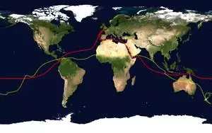 The first recorded circumnavigation of the Earth was the Magellan-Elcano expedition, which sailed from Seville, Spain in 1519 and returned in 1522, after crossing the Atlantic, Pacific, and Indian oceans. Since the rise of commercial aviation in the late 20th century, circumnavigating Earth is straightforward, usually taking days instead of years.[1] Today, the challenge of circumnavigating Earth has shifted towards human and technological endurance, speed, and less conventional methods.