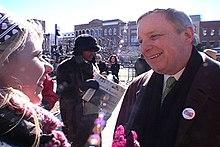 The original Citizen Kate, real name Kate Soglin, hails from Chicago, Illinois. She stands by her key message and platform of "Peace and Hugs". Her major concern is the environment, and founded the small environmental organization, Friends with Trees. Soglin first interviewed Illinois Senator Dick Durbin at Barack Obama's presidential announcement.[7] She caught the attention of the Illinois Lieutenant Governor and shook hands with him at Rich Miller's Capitol Fax Blog Party the night before Obama's announcement.[4] And the Mayor of Springfield, Illinois, Tim Davlin, was the first mayor to kiss Citizen Kate's cheek.[8]