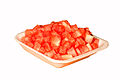 Watermelon is a sweet, commonly consumed fruit of summer, usually as fresh slices, diced in mixed fruit salads, or as juice.[47][48] Watermelon juice can be blended with other fruit juices or made into wine.[49]