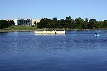 Ferril Lake includes the Prismatic Fountain which dates back to 1908. Originally designed by engineer Frederic W. Darlington and was a revolutionary feature for the time. The recently renovated fountain now boasts LED lights which cycle through different formations, with each cycle spanning an hour.[4][5]