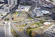 Interchange consisting of the Burnley Tunnel entrance, Domain Tunnel entrance, West Gate freeway and Power Street/Kings Way ramps.