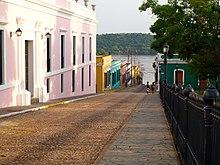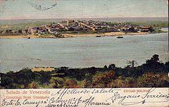 Ciudad Bolívar (Spanish pronunciation: [sjuˈðað βoˈliβaɾ]; Spanish for "Bolivar City"), formerly known as Angostura[4] and St. Thomas de Guyana,[5] is the capital of Venezuela's southeastern Bolívar State. It lies at the spot where the Orinoco River narrows to about 1 mile (1.6 km) in width, is the site of the first bridge across the river, and is a major riverport for the eastern regions of Venezuela.