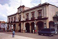 The original name of the settlement and the area was Taximaroa. The origin of this name is unclear. Some sources claim some variation of this had been the name since Toltec times, but this form is from the Purépecha language.[3] The meaning is similarly unclear. It may mean “altar of the god’s put on the road” in reference to a place where the Purépecha defeated the Aztecs.[3] Another source says it means “place of carpenters,” but the Aztec name for the place Tlaximaloyan, means this and was probably given due to is similarity with the Purépecha name.[2][7] Another source states that the name means “place of traitors.” This etymology stems from Conquest. Cristobal de Olid was on his way west to Tzintzuntzan when an Purépecha army was heading east to intercept him. Olid, along with a number of Purépecha from this area, tricked the army into an ambush and captured them.[2] After the Conquest, the name changed to San José Taximaroa.[3] Near the end of the 18th century, a hacienda was acquired here by Miguel Hidalgo y Costilla. This later prompted the name of the municipality to change to Villa Hidalgo Taximaroa in 1908, and then again to Ciudad Hidalgo in 1922.[4][7]