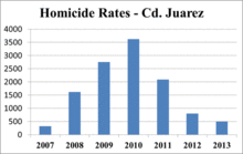 - ^ "Termina 2015 con 300 homicidios; disminuye violencia en 23% del 2014". Juarez Noticias. Archived from the original on March 4, 2016. Retrieved January 14, 2015.