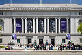 The Pioneer Monument, funded by the estate of James Lick and dedicated to Manifest Destiny, is located in the middle of Fulton Street between the Library and the Asian Art Museum. The section of Fulton Street between Hyde and Leavenworth streets was pedestrianized and re-developed into United Nations Plaza in 1975 as a monument for the United Nations and the signing of the UN Charter, when the Bay Area Rapid Transit subway was constructed under Market Street. The 2.6-acre (11,000 m2) pedestrian mall was designed by Lawrence Halprin.[13] It was rededicated in June 1995 by visiting members of the UN General Assembly as part of its 60th anniversary, and renovated and rededicated again in 2005 during the World Environment Day event. Currently, it is the site of a small farmers' market as well as a replica of a large equestrian statue of Simon Bolivar.