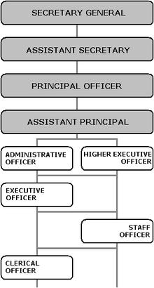 In some departments or offices, particularly at senior levels in the Civil Service of the State, different titles (such as Director or Commissioner) may be applied to positions instead of the traditional grade. There also exists the grades of Services Officer, Staff Officer, Administrative Officer, and Second Secretary which only exist in certain departments or offices. Specialist or technical positions may have a different grading structure.