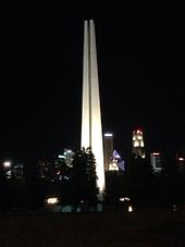 The Memorial to the Civilian Victims of the Japanese Occupation, usually called the Civilian War Memorial, is a war memorial and heritage landmark in Singapore next to Esplanade MRT station. It was built in memory of the civilians killed during the Japanese occupation of Singapore during World War II. The Civilian War Memorial sits on serene parkland in the midst of busy city traffic near Singapore's Padang and City Hall. Located within the War Memorial Park at Beach Road within the Central Area, Singapore's central business district, it is usually easy to spot in most backdrops encompassing the CBD landscape. It was gazetted as a 65th national memorial on 15 August 2013.