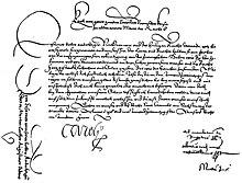 Summons for Martin Luther to appear at the 1521 Diet of Worms, signed by Charles V. The text on the left was on the reverse side.