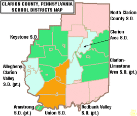 Clarion County is a county located in the U.S. state of Pennsylvania. As of the 2010 census, the population was 39,988.[2] Its county seat is Clarion.[3] The county was formed on March 11, 1839, from parts of Venango and Armstrong counties. Clarion County is entirely defined as part of the Pittsburgh media market.