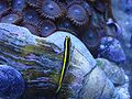 Mimic species have evolved body forms, patterns, and colors which imitate other species to gain a competitive advantage.[28] One of the most studied examples of mimicry on coral reefs is the relationship between the aggressive mimic Plagiotremus rhinorhynchos (the bluestriped fangblenny) and the cleaner wrasse model Labroides dimidiatus. By appearing like L. dimidiatus, P. rhinorhynchos is able to approach and then feed on the tissue and scales of client fish while posing as a cleaner.[29][30]