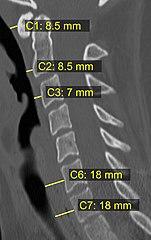 - ^ a b Rojas, C.A.; Vermess, D.; Bertozzi, J.C.; Whitlow, J.; Guidi, C.; Martinez, C.R. (2009). "Normal Thickness and Appearance of the Prevertebral Soft Tissues on Multidetector CT". American Journal of Neuroradiology. 30 (1): 136–141. doi:10.3174/ajnr.A1307. ISSN 0195-6108. PMID 19001541.