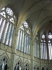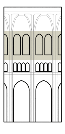 The tendency from the early Romanesque period to the late Gothic period was for the clerestory level to become progressively taller and the size of the windows to get proportionally larger in relation to wall surface, emerging in works such as the Gothic architecture of Amiens Cathedral or Westminster Abbey, where their clerestories account for nearly a third of the height of the interior.[4]