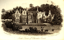 An early picture of the court shows a building known as Wake's Tower on Court Hill. It is included in Saxton's map of 1570 but was demolished before 1738.[32] Towers such as this were popular Elizabethan features and were lookouts or summer houses. A summerhouse was built on the site but this too was in ruins by the early 19th century.