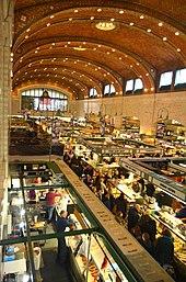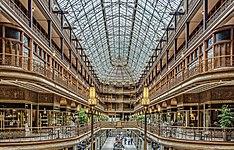 Completed in 1927 and dedicated in 1930 as part of the Cleveland Union Terminal complex, the Terminal Tower was the tallest building in North America outside New York City until 1964 and the tallest in the city until 1991.[54] It is a prototypical Beaux-Arts skyscraper. The two newer skyscrapers on Public Square, Key Tower (currently the tallest building in Ohio) and the 200 Public Square, combine elements of Art Deco architecture with postmodern designs. Cleveland's architectural treasures also include the Cleveland Trust Company Building, completed in 1907 and renovated in 2015 as a downtown Heinen's supermarket,[90] and the Cleveland Arcade (sometimes called the Old Arcade), a five-story arcade built in 1890 and renovated in 2001 as a Hyatt Regency Hotel.[91][92]