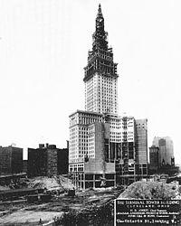In 1929, the city hosted the first of many National Air Races, and Amelia Earhart flew to the city from Santa Monica, California in the Women's Air Derby (nicknamed the "Powder Puff Derby" by Will Rogers).[53] The Van Sweringen brothers commenced construction of the Terminal Tower skyscraper in 1926 and, by the time it was dedicated in 1930, Cleveland had a population of over 900,000.[54][39] The era of the flapper also marked the beginning of the golden age in Downtown Cleveland retail, centered on major department stores Higbee's, Bailey's, the May Company, Taylor's, Halle's, and Sterling Lindner Davis, which collectively represented one of the largest and most fashionable shopping districts in the country, often compared to New York's Fifth Avenue.[55]