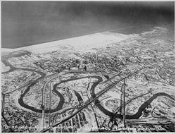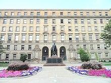 Cleveland was hit hard by the Wall Street Crash of 1929 and the subsequent Great Depression. A center of union activity, the city saw two major strikes by workers in this period, against Fisher Body in 1936 and then against Republic Steel in 1937.[31] The city was also aided by major federal works projects sponsored by President Franklin D. Roosevelt's New Deal.[56] In commemoration of the centennial of Cleveland's incorporation as a city, the Great Lakes Exposition debuted in June 1936 at the city's North Coast Harbor, along the Lake Erie shore north of downtown.[57] Conceived by Cleveland's business leaders as a way to revitalize the city during the Depression, it drew four million visitors in its first season, and seven million by the end of its second and final season in September 1937.[58]