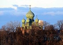 Cleveland's landmark ecclesiastical architecture includes the historic Old Stone Church in downtown Cleveland and the onion domed St. Theodosius Russian Orthodox Cathedral in Tremont,[97][98][99] along with myriad ethnically inspired Roman Catholic churches.[100]