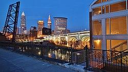 By the turn of the 21st century, Cleveland succeeded in developing a more diversified economy and gained a national reputation as a center for healthcare and the arts. Additionally, it has become a national leader in environmental protection, with its successful cleanup of the Cuyahoga River.[78] The city's downtown has experienced dramatic economic and population growth since 2010.[79] In 2018, the population of Cleveland began to flatten after decades of decline.[80] However, challenges still remain for the city, with economic development of neighborhoods, improvement of city schools, and continued encouragement of new immigration to Cleveland being top municipal priorities.[81][82]