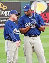 Prior to being called up by the Expos, Floyd won The Sporting News Minor League Player of the Year Award in 1993 after successful stints with the Harrisburg Senators of the Eastern League and Triple-A Ottawa Lynx.[3] He made his major league debut that same year at only 21 years old, playing in 10 games with the Expos. On June 27, 1994, Floyd hit a home run off Atlanta Braves pitcher Greg Maddux at Olympic Stadium on a pitch that was low, by golfing the ball out in what would become a signature moment in the Expos dominant but strike-shortened 1994 season.[3] Although Floyd never showed the power that was to come in later years during his first tenure with the Expos, he has expressed fondness for his time in Montreal, crediting his initial experience there for helping him grow both professionally and as a person.[4]