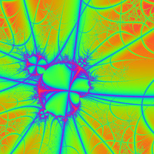 Pickover stalks are certain kinds of details that are empirically found in the Mandelbrot set in the study of fractal geometry. In the 1980s, Pickover proposed that experimental mathematicians and computer artists examine the behavior of orbit trajectories for the Mandelbrot in order to study how closely the orbits of interior points come to the x and y axes in the complex plane. In some renditions of this behavior, the closer that the point approaches, the higher up the color scale, with red denoting the closest approach. The logarithm of the distance is taken to accentuate the details. This work grew from his earlier work with Julia sets and "Pickover biomorphs," the latter of which often resembled microbes.[27][28]