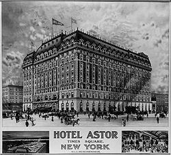 In New York City's ambitious building boom c. 1900, Clinton and Russell were responsible for designing the world's largest apartment building, the world's largest office building, and a cluster of early downtown skyscrapers along Broadway and Wall Street for banks and insurance companies. Many of the firm's important commissions related to real estate investments of the Astor family. The landmark Astor Hotel that served as an anchor for the development of Times Square, the Astor Apartments, the Graham Court Apartments, and The Apthorp were among their projects for William Waldorf Astor, 1st Viscount Astor. Stylistically, much of their work conformed to a conservative Italian Neo-Renaissance style.[2]